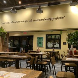 Healthy food, nice place , parking spot , large dining in inside and outside , many food options, organic and vegetarian options, clean place , lovely staff with great service , Family business you will surprise from this little server Omar. Ask for the seafood options.