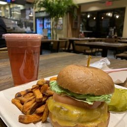 Good food, good service. Place is spotless. Chicken wrap was delicious , fairly priced, and a generous amount of chicken. Bison burger was fabulous but very small. Ordered it without the bun , because I wanted to enjoy the taste of the meat, which I did. Still feeling hungry, I ordered regular French fries. They took forever to come, and they were LOUSY!! Frozen from a box. I could have that at home.